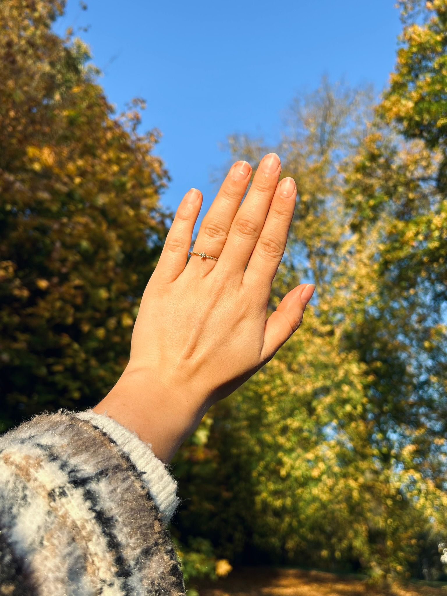 Wir spazierten am Ufer entlang, lachten, redeten, genossen einfach den Moment. In mir aber wuchs die Aufregung – ich wartete nur auf den richtigen Augenblick. Und dann, zwischen Sonne, Bäumen und fallendem Laub, war er da.